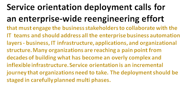 1) Leveraging Service Orientation Best Practices - enforcing principles and leveraging best practices that advance a dynamic IT integration technology and promote agile IT solutions